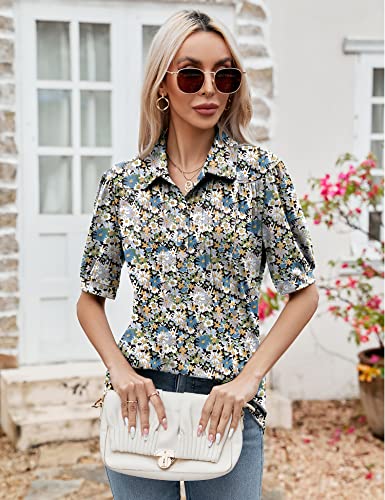 Micoson Womens Blouses Dressy Casual Short Sleeve Button Down Collared Polo Shirt Loose Tunic 2023 Summer Tops 2