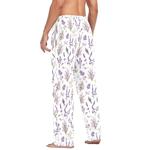 HOT ! Men's Lavender Flowers Pajama Pants with Pockets - Straight Fit Cotton Sleep Bottoms for Lounge & Nightwear#376