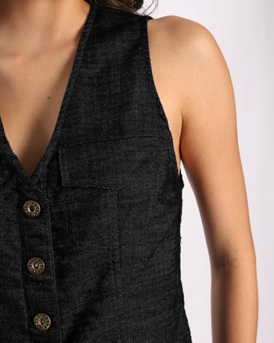 • Features: This vest features a classic jean-inspired design with a V-neck, single-row metal button closure, and dual decorative chest pockets. Combines retro style for a chic, laid-back look