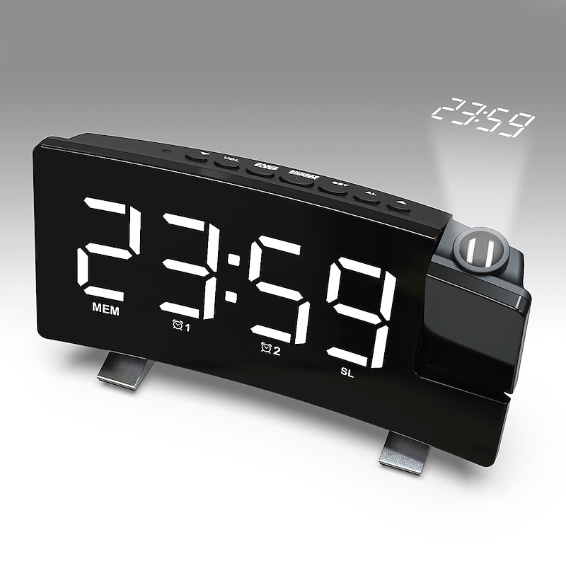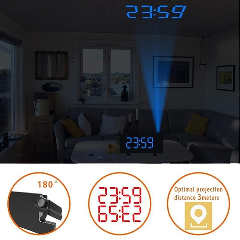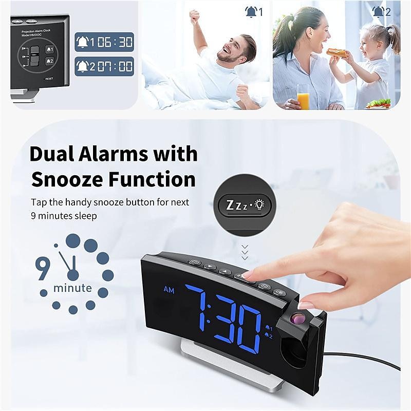 HOT ! Projection Clocks FM Radio Curved-Screen Digital Alarm Clock LED Display with Dimmer Dual Alarm with USB Charging Port 12/24 Hours Backup Battery for Clock Setting