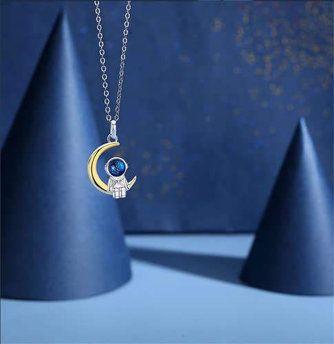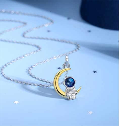 HOT ! Dtja Moon Astronaut Pendant Necklace for Women Silver Plated Unisex Adjustable Link Chain Cute Charm Couple Friends Necklaces Unique Birthday Valentine Jewelry Souvenir Gift
