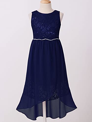 Kids Big Girls Sequin Irregular Flared Party Dress Sleeveless Lace Bodice Chiffon Junior Bridesmaid Dress 6