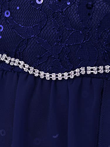 Kids Big Girls Sequin Irregular Flared Party Dress Sleeveless Lace Bodice Chiffon Junior Bridesmaid Dress 4