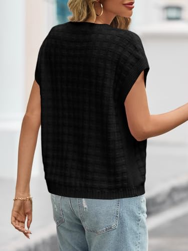 Saodimallsu Womens Cap Sleeve Sweater Tops Casual Crew Neck Sleeveless Loose Knit Summer Lightweight Pullover Top 1