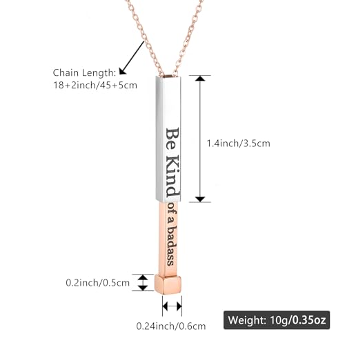 SKQIR Be Kind of a Badass Necklaces for Women with Hidden Message To Best Friends Sisters Funny Inspirational Gifts Vertical Bar Pendant Necklaces Jewelry Gag Gifts for Women 7