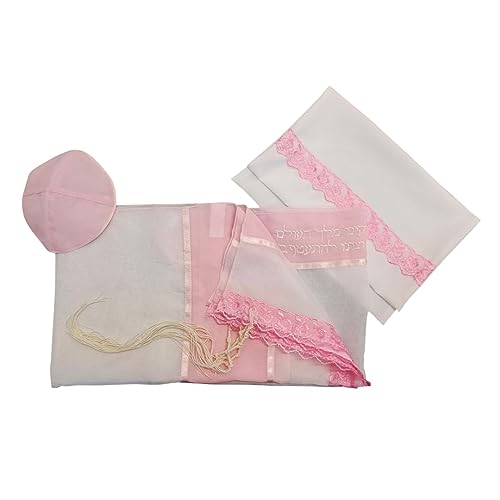 HOT ! Personalized Women's Tallit, Pink Lace Bat Mitzvah Tallit Prayer Shawl, Tallit for Women, Girls Tallit from Israel