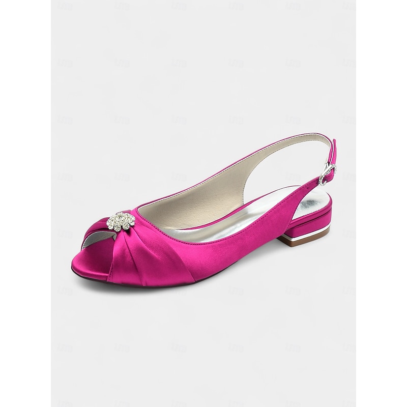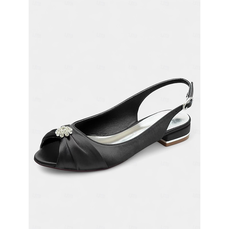 Highlights - Luxurious satin upper - Synthetic leather lining for comfort - Sparkling rhinestone embellishments - Stylish peep toe design - Durable rubber outsole - On-trend for 2024 with glitter, crystal, sequined, and jeweled details