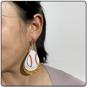 More information about Baseball Faux Leather Earrings Lightweight Teardrop Earrings Sequin Dangle Earrings