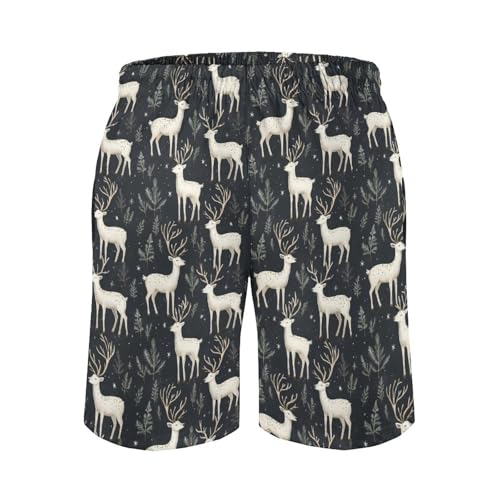 Hawaiian Shorts for Men - Comfy Deer Plant Print Mens Swim Trunks Bathing Suits with Mesh Lining 1