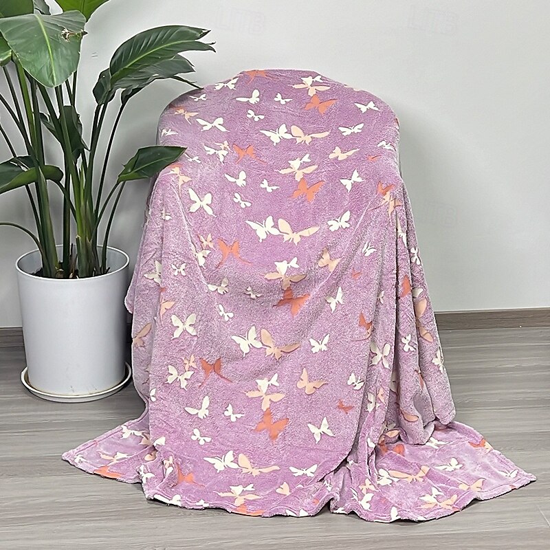 HOT ! Glow-in-the-Dark Flannel Blanket, Soft Plush Throw for Kids, Cartoon Nap Blanket for Office, Nursery, and Kindergarten, Air Conditioning Blanket