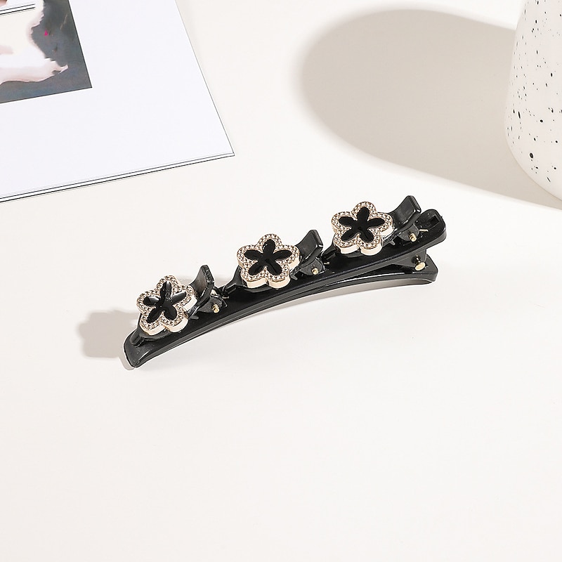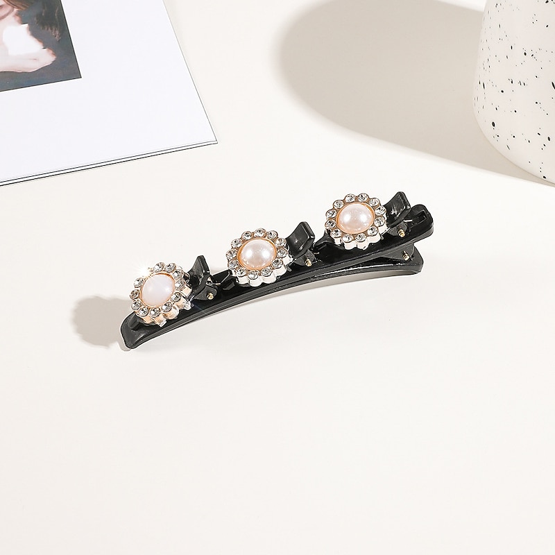 Highlights [Material]: Crafted from high-quality imitation pearl and resin, these hair clips offer a chic and durable design, perfect for maintaining a secure hold while adding a touch of elegance to any hairstyle. [Style and Fit]: Designed with a sophisticated and dainty style, these hair clips are suitable for women and girls. Their versatile fit makes them ideal for creating various hairstyles, from casual to formal. [Design Highlights]: Each hair clip in this set features sleek black clips enhanced with decorative elements. The variety includes floral motifs with intricate detailing and faux pearls for a classic, timeless appeal, alongside sparkling rhinestones that add a hint of glamour. [Occasions]: Perfect for party evenings, daily wear, birthdays, and festivals, these barrettes bring both functionality and style to any accessory collection. They effortlessly elevate any hairstyle, making them a versatile choice for various occasions. [Size Range]: This set includes four hair clips, providing ample options for accessorizing different hair types and styles.