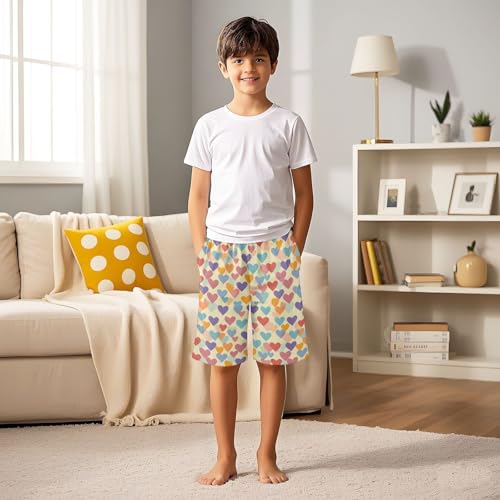 ALAZA Heart Colorful Cartoon Pajama Shorts Sleep Shorts Pant Lounge Pajama Bottoms Elastic Waist with Pockets 1