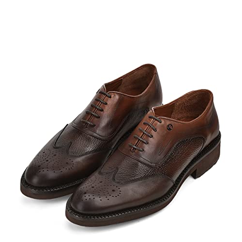 FRANCO CUADRA Men's Derby Shoes in Genuine Deer Leather Brown 5