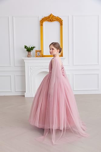 Flower Girls Chiffon Flowing Shoulder Tulle Dress Wedding Fancy Pageant Homecoming Party Long Dresses 6