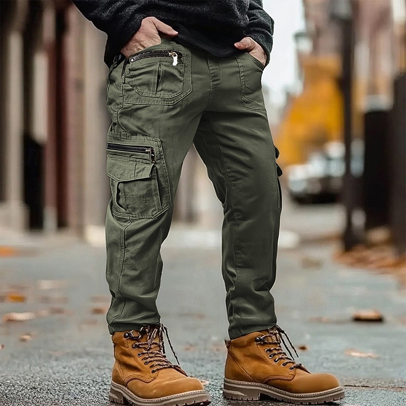 HOT ! Men's Cargo Pants Trousers Buttons Multi Pocket Plain Wearable Outdoor Daily Camping & Hiking Fashion Classic Black Yellow