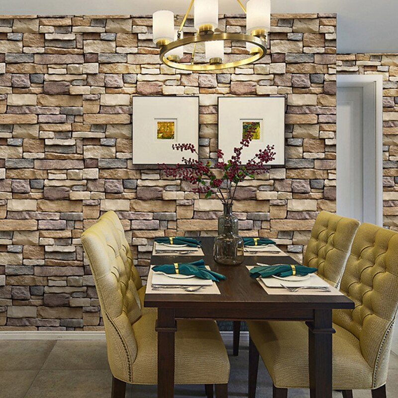 HOT ! Cool Wallpapers Wall Mural 3D Brick Wallpaper for Walls Wall Covering Sticker Film Peel and Stick Removable Brown Vinyl PVC Home Décor 1000x45cm/393.7''x 17.72''