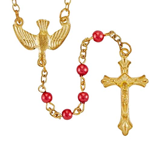 More information about Needzo Confirmation Catholic Rosary Beads with Case, Red Beaded Prayer Necklace with Gold Tone Holy Spirit Center and Traditional Crucifix, Confirmed in Christ Keepsake Gift, 16.5 Inches