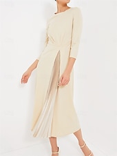 More information about Women's Midi Dress A Line Dress Elegant Stylish Basic Vacation Party Work Regular Fit Plain 3/4 Length Sleeve V Neck Apricot Spring Fall