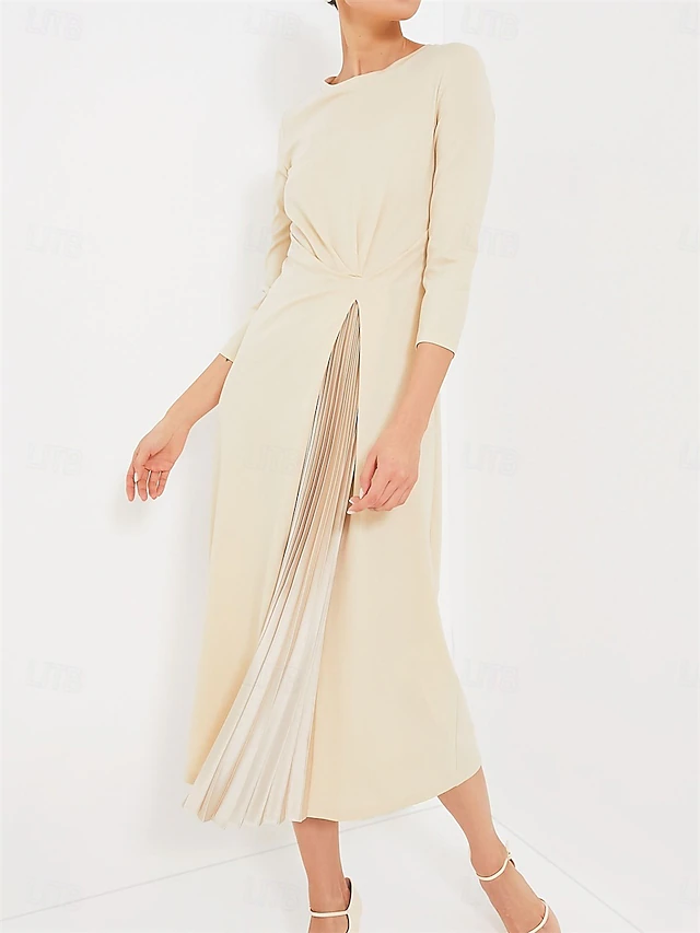 HOT ! Women's Midi Dress A Line Dress Elegant Stylish Basic Vacation Party Work Regular Fit Plain 3/4 Length Sleeve V Neck Apricot Spring Fall