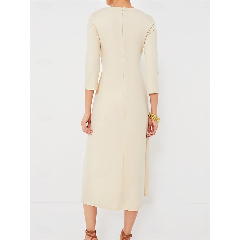 Women's Midi Dress A Line Dress Elegant Stylish Basic Vacation Party Work Regular Fit Plain 3/4 Length Sleeve V Neck Apricot Spring Fall 3