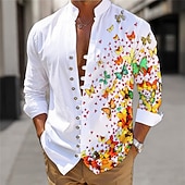 More information about Men's Butterfly Shirt Linen Shirt Long Sleeve Casual Daily Wear Going out Weekend Spring Standing Collar Print Button-Down Blue Purple Orange