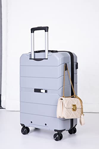 Hard Shell Luggage Sets,Hardshell Suitcase Spinner Wheels PP Luggage Sets Lightweight Suitcase with TSA Lock,3-Piece Set (20"/24"/28") (Silver) 3