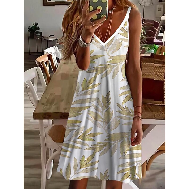 Women's Mini Dress Casual Dress Sundress Shift Dress Summer Dress Vacation Sexy Casual Outdoor Vacation Daily Regular Fit Print Sleeveless V Neck Spaghetti Strap Yellow Pink Blue Purple Summer Spring 2
