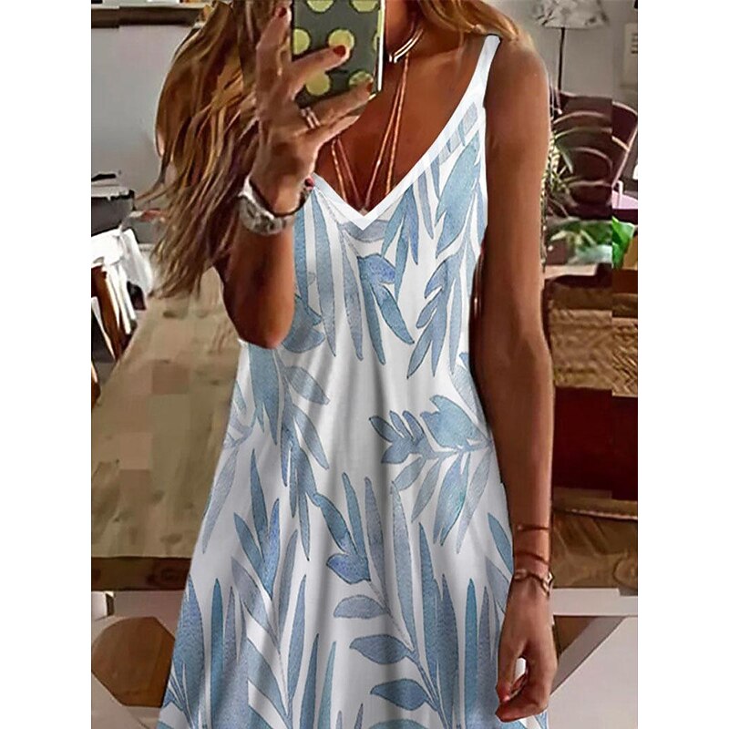 HOT ! Women's Mini Dress Casual Dress Sundress Shift Dress Summer Dress Vacation Sexy Casual Outdoor Vacation Daily Regular Fit Print Sleeveless V Neck Spaghetti Strap Yellow Pink Blue Purple Summer Spring