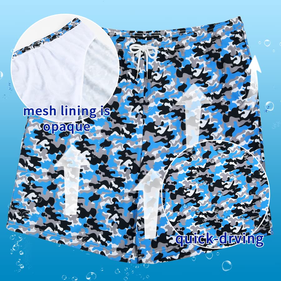 • 【Features】: Mesh lining is soft and comfortable, and dries faster than the ordinary liner. The elastic waistband with adjustable drawstring runs through the beach shorts which can freely adjust the tightness of your waist. There are two pockets on the left and right sides of the men's swim briefs, and a classic back pocket can safely store mobile phones and other valuables, which are not easy to drop.