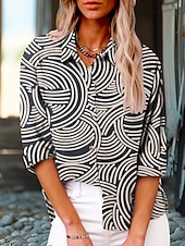 More information about Women's Shirt Geometric Active Daily Stylish Long Sleeve Shirt Collar Regular Tops Daily Holiday Buttons Print Navy Blue Summer Spring Fall