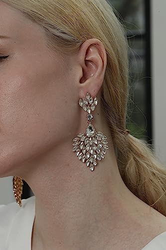 Fashion Statement Chandelier Earrings for Women Rhinestone Crystal Large Dangle Earrings for Wedding Prom Party 5