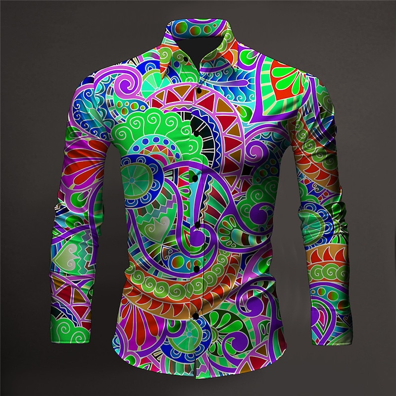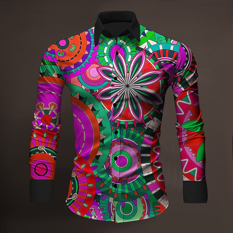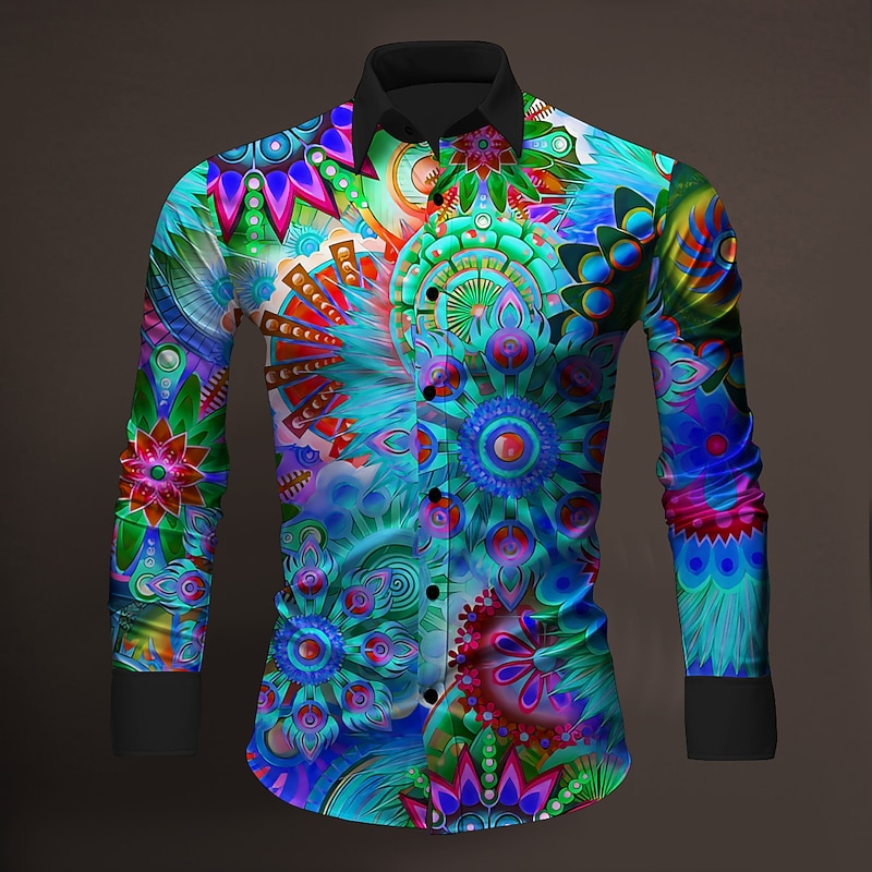More information about Men's Floral Optical Illusion Shirt Button Up Shirt Long Sleeve Artistic Daily Wear Going out Fall & Winter Turndown Print Button-Down Yellow Royal Blue Blue Purple Orange