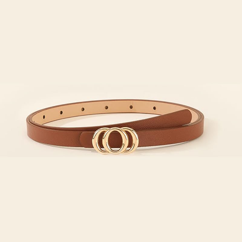 Leather Skinny Belts for Women, Adjustable PU Thin Belts with Gold Buckle in Black, Camel and Khaki for Jeans Dress Pants Casual Wear 5