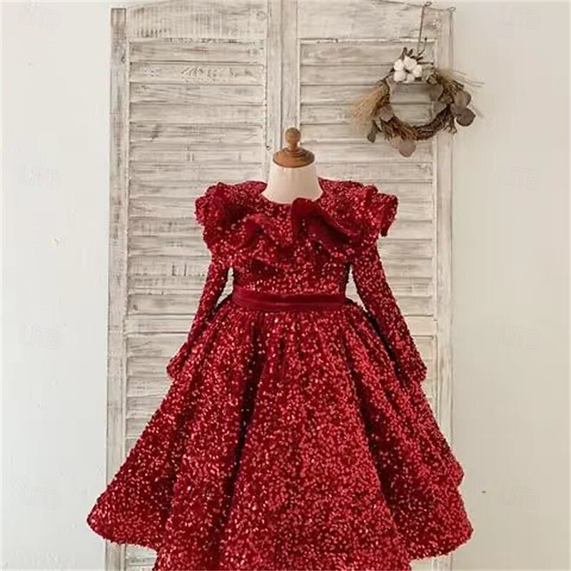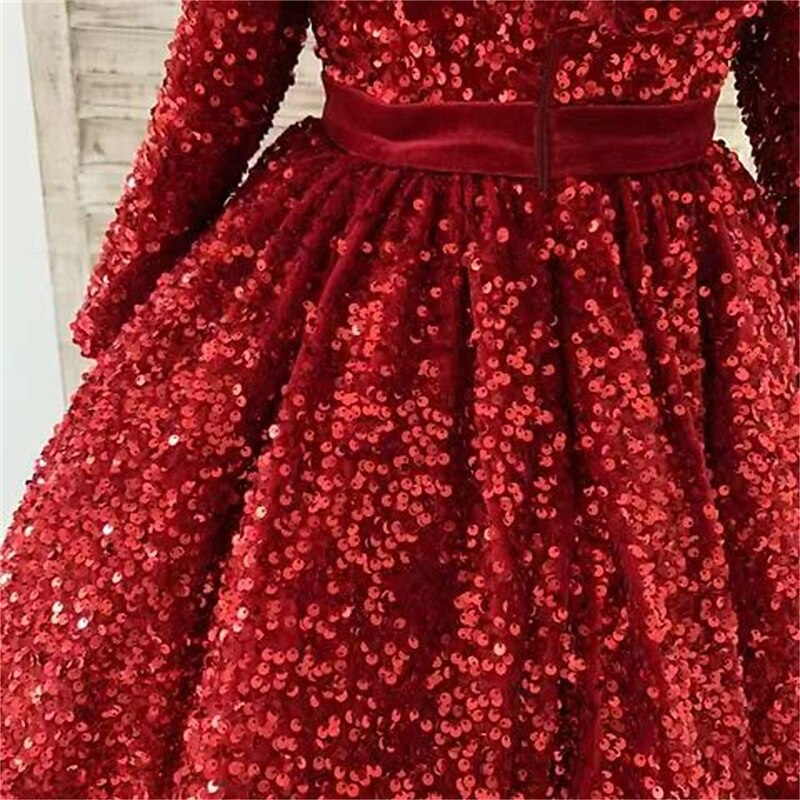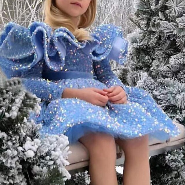 More information about Kids Girls' Party Dress Solid Color Long Sleeve Performance Mesh Princess Sweet Mesh Mid-Calf Sheath Dress Tulle Dress Summer Spring Fall kids Wine Sky Blue