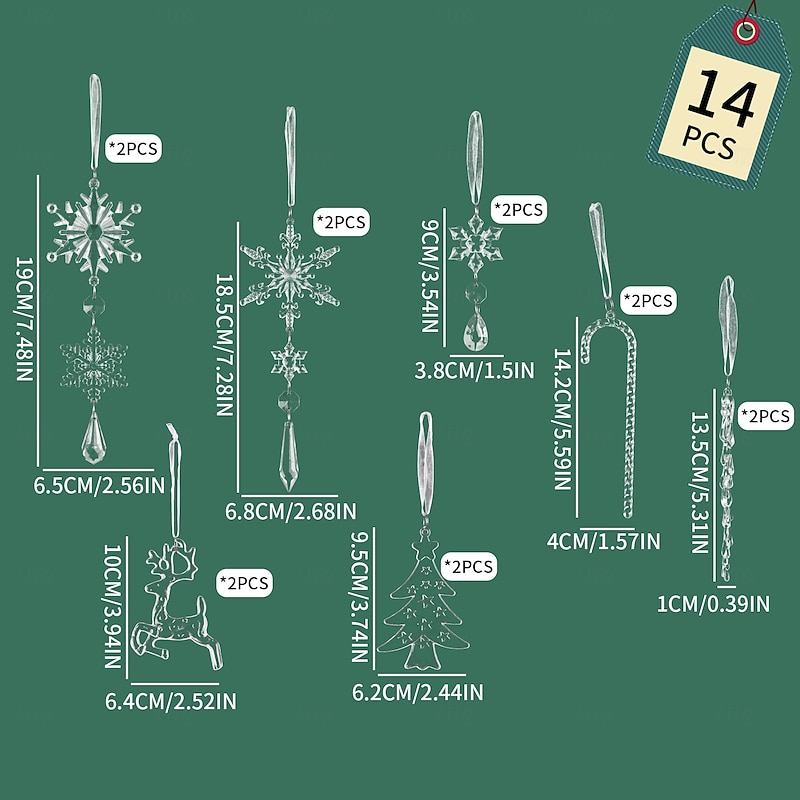 $14.99 - 14Pcs Christmas Tree Crystal Ornaments Snowflakes Decorations, Clear Acrylic Snowflake Hanging Ornaments with Icicle Drop Reindeer for Xmas Tree Winter Holiday Wedding Home Party Decor 2025. Shop for cheap Ornaments online? Buy at lightinthebox.com on sale today!