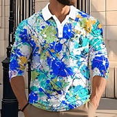 More information about Men's Splash Ink Polo Long Sleeve Polo Shirts Lapel Casual Street Athleisure Daily Wear 3D Print Buttons Spring Fall Winter Yellow Blue Purple