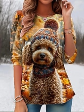 Halloween Women's T Shirt Graphic Animal Cat Vintage Cute Stylish Long Sleeve Crew Neck Round Neck Regular Tops Daily Print Black Light Brown Orange Summer Spring Fall 7