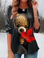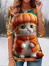 More information about Halloween Women's T Shirt Graphic Animal Cat Vintage Cute Stylish Long Sleeve Crew Neck Round Neck Regular Tops Daily Print Black Light Brown Orange Summer Spring Fall