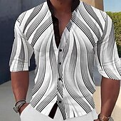 More information about Men's Geometric Pattern Shirt Button Up Shirt Long Sleeve Casual Daily Holiday Summer Spring & Fall Standing Collar Buttons Print White