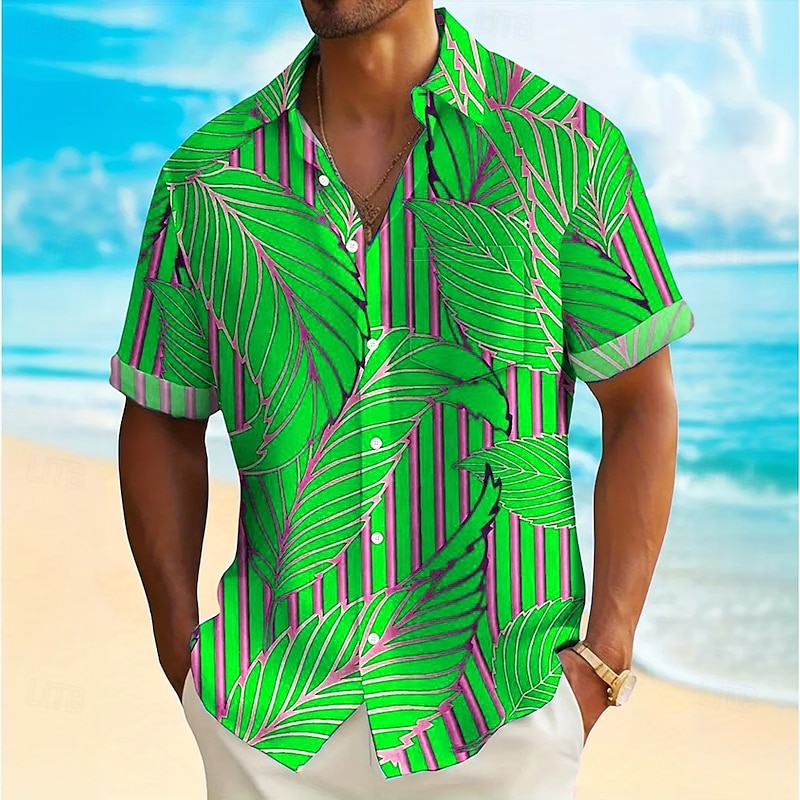 More information about Men's Palm Leaf Tropical Plants Summer Hawaiian Shirt Button Up Shirt Short Sleeve Hawaiian Resort Vacation Holiday Beach Wear Summer Spring Turndown Collared Shirts Front One Pocket Blue Sky Blue