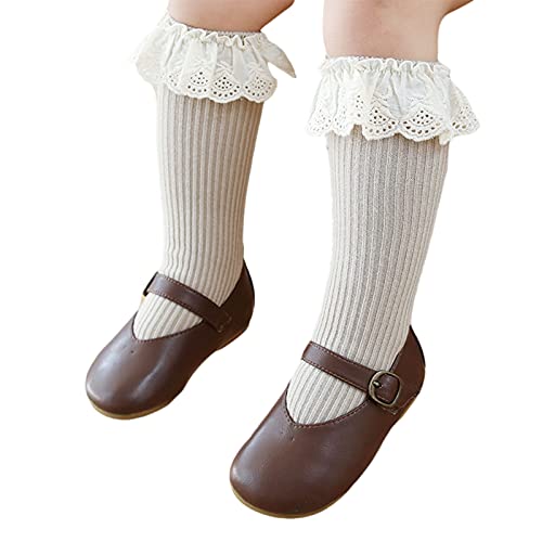 Toddler Girls Knitted Socks with Ruffled Lace Cute Middle Tube Stockings for Spring Autumn 2
