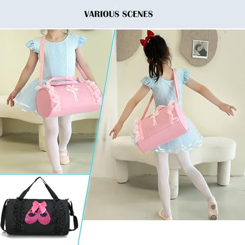 • PREMIUM CUTE BALLET BAGS: This dance bag has a fashionable appearance, cute sequin dance shoes and bow decorative design pattern, ballet bag is designed with hardware slider, smooth and easy to pull, no snagging, comfortable carry handles, comfortable and not strangling, adjustable shoulder strap design, adjustable length according to the demand, portable name tags make it easy for you to write your own name,practical, and not easy to be lost, It is an ideal gift for a little princess.