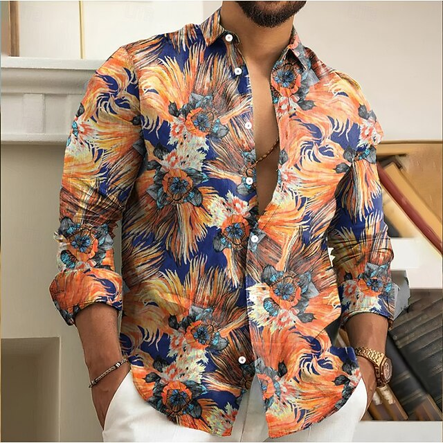 Men's Floral Print Flowers Shirt Button Up Shirt Long Sleeve Fashion Casual Holiday Casual Daily Spring Fall Turndown 3D Print Collared Shirts Yellow Blue Orange 7