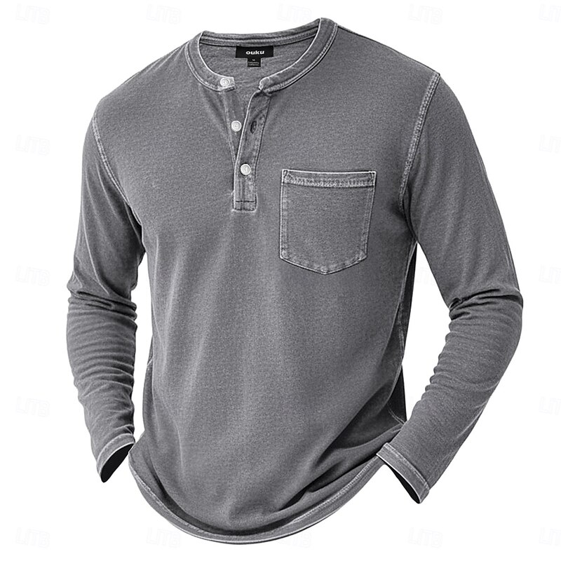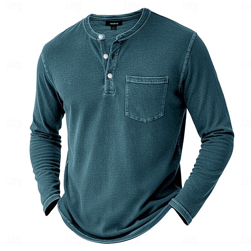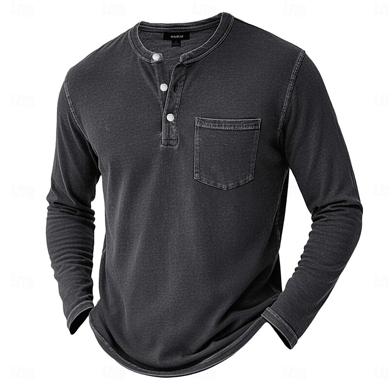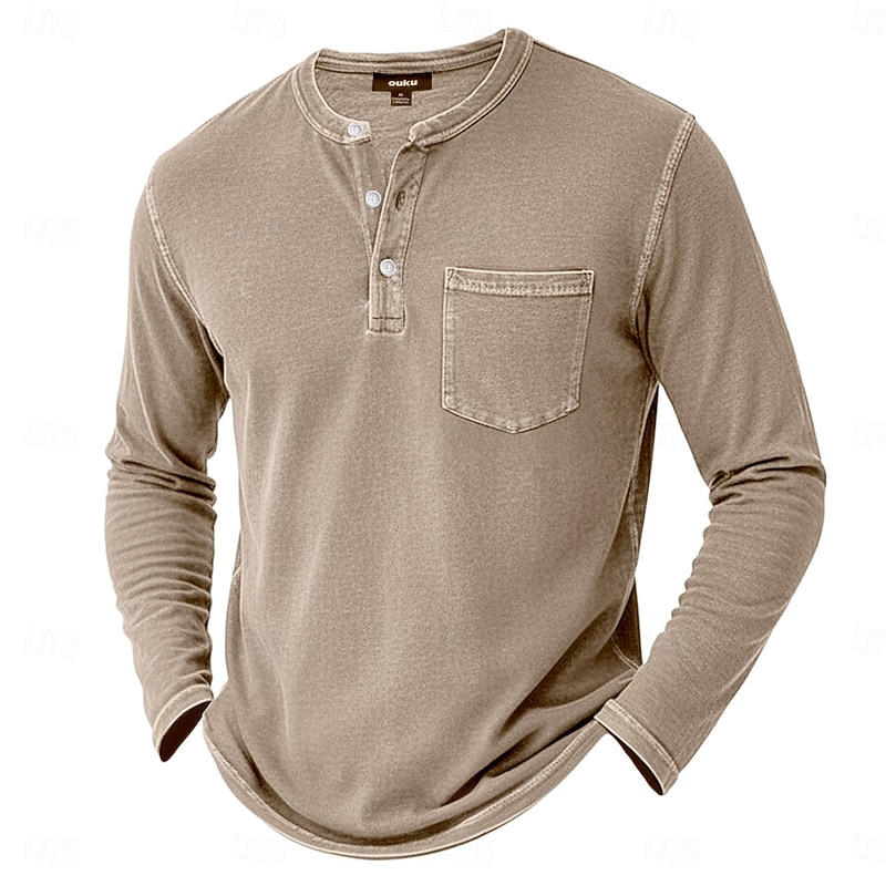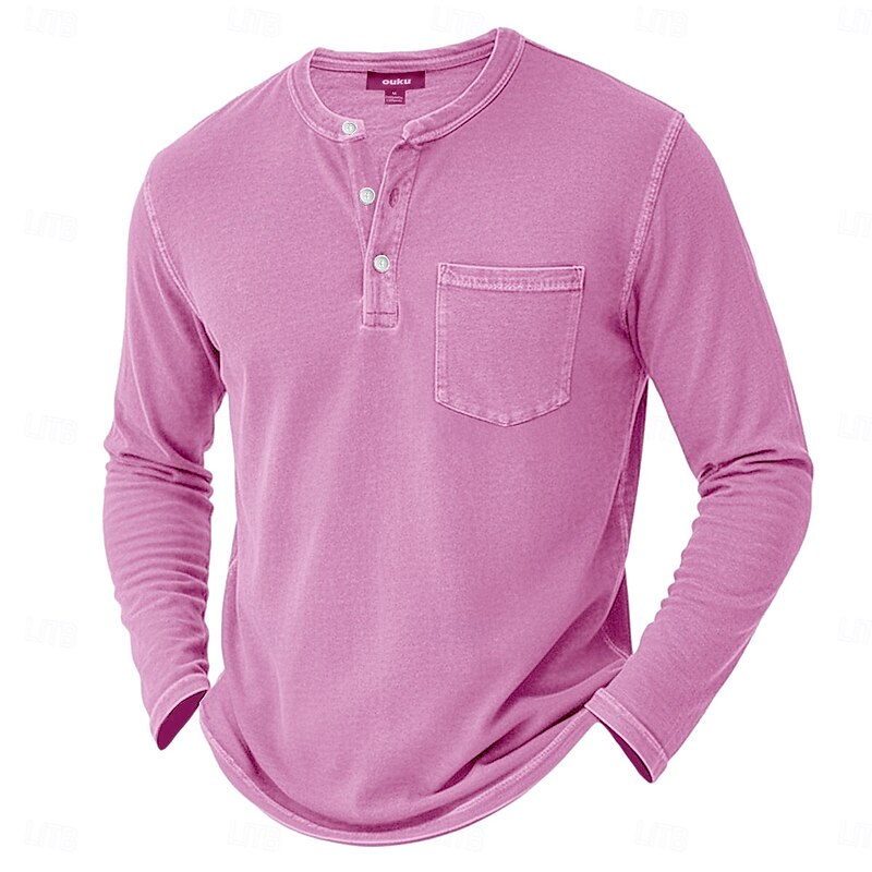 Men's Henley Shirt Tee Tee Top Long Sleeve Shirt Long Sleeve Retro Solid Fashion Designer Casual Fashion Vintage Plain Henley Vacation Street Casual Fall Winter dark brown Black Pink Henley T-Shirt