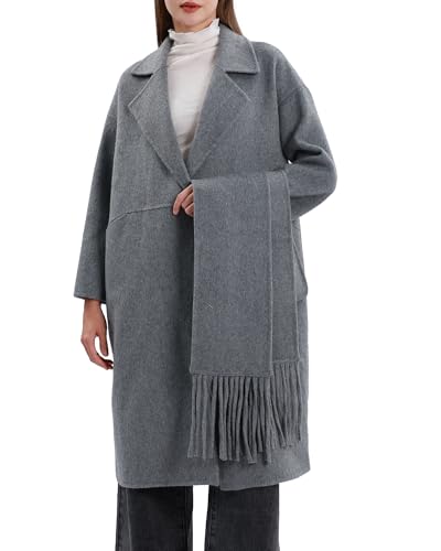 Womens Winter Notch Lapel Wool Blend Coat Casual Warm Peacoat with Scarf 4