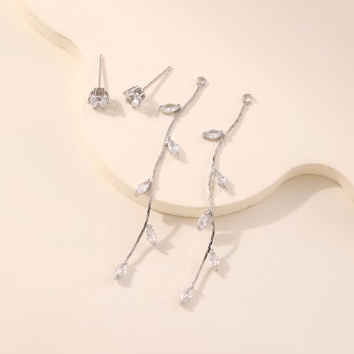 Long Crystal Drop Earrings Dangling Cubiz Zirconia Threader Earrings Crystal Leaf Drop Dangle Earrings for Women Bridal Wedding 3