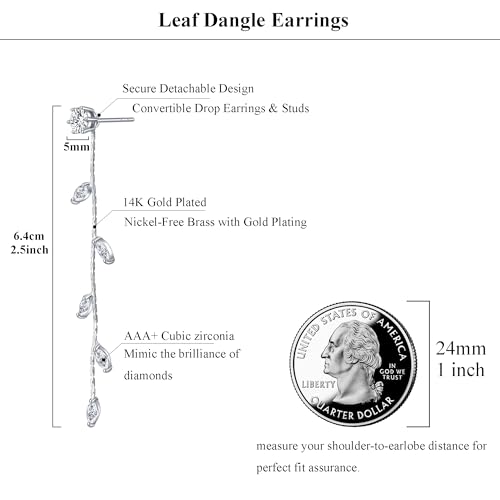 • Lightweight Comfort: Funky and dainty dangle leaf earrings! The lightweight, 2.4"(6 cm) long CZ drop earrings are designed for all-day wear without discomfort.