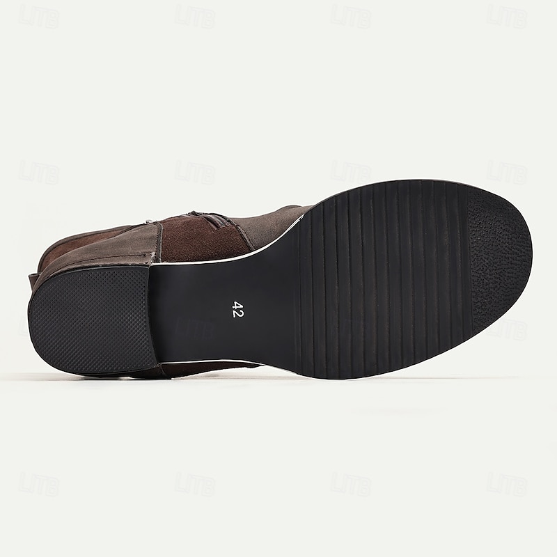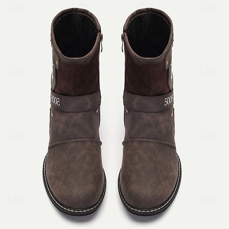 Men's Steampunk Motorcycle Boots with Double Buckle Straps and Embossed Lion Design - Brown Faux Leather Ankle Boots 5