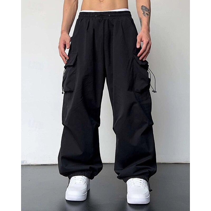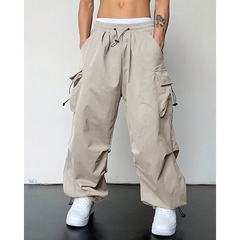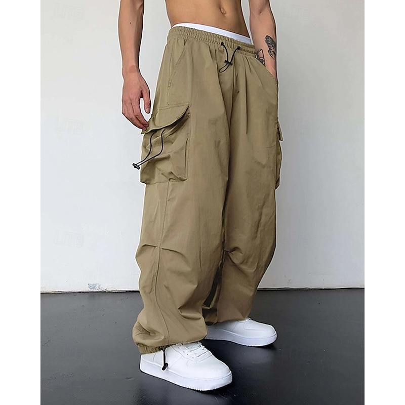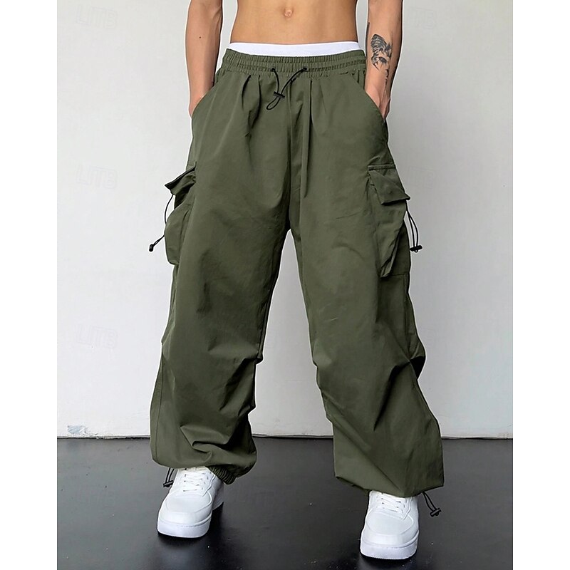 More information about Men's Cargo Pants Trousers Drawstring Elastic Waist Multi Pocket Plain Wearable Outdoor Daily Camping & Hiking Fashion Classic Black Light Green