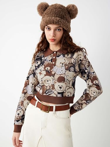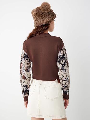 HOT ! CIDER Polo Position Bear Button Knitted Long Sleeve Sweater